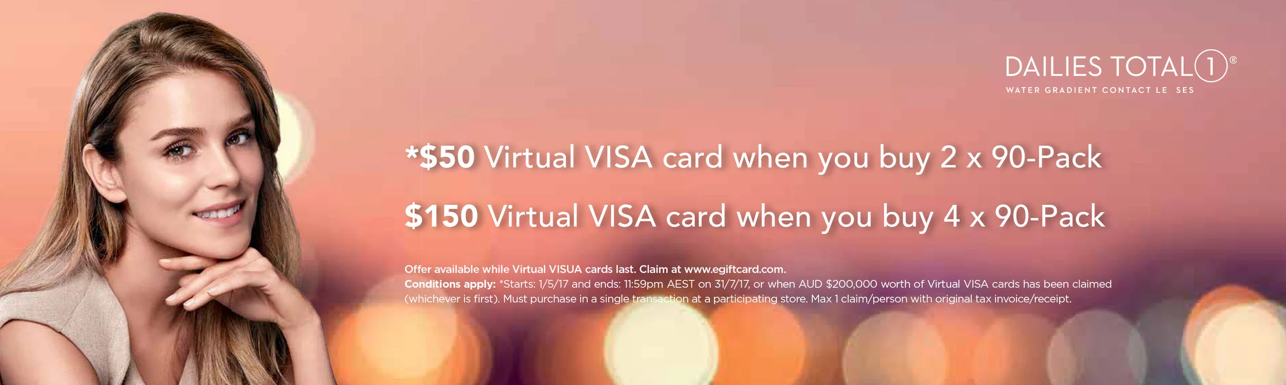 Make an eligible purchase between 1st May 2017 to 31st July 2017. $50 Virtual VISA Card on 2 x 90-Packs, or $150 Virtual VISA Card on 4 x 90-Packs.